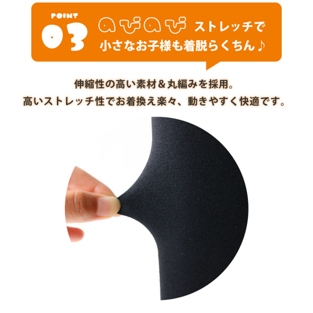 ●【105サイズ】身長:95~115cm、胴囲:46~52cm ●【120サイズ】身長:110~130cm、胴囲:49~55cm ●【135サイズ】身長:125~145cm、胴囲:52~58cm ●【150サイズ】身長:140~160cm、胴囲:56~63cm ※伸縮性のあるニット製品のため、サイズに個体差がございます。 |