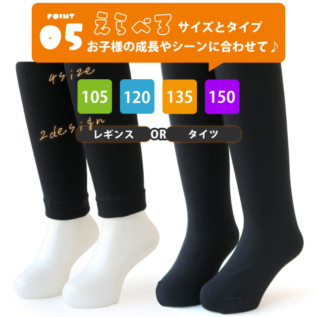 ●キッズ用 あったか裏起毛レギンスタイツ、着膨れ感を抑えたライトタイプです。 ●タイツ・レギンスからお選びいただけます。 ●肌ざわりの良さと、高いストレッチ性能にこだわりました。 ●抜群の伸縮性で何かと動き回る子供たちもストレスなく履けます。 ●軽量でほどよい厚み、重ね着もしやすいです。 ●寒い時期に大活躍するインナーです |