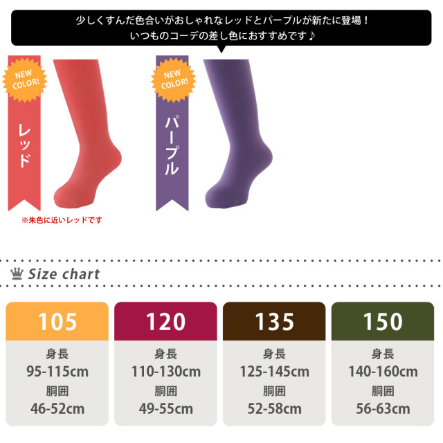 ●足元にプラスしておしゃれ度アップ!カラバリ豊富なカラータイツに待望のキッズ用が仲間入り。 ●お出かけにピッタリなアクセントカラーとフォーマルにピッタリなベーシックカラーの全8カラーに、新色の薄グレーが仲間入り。選べる4つのサイズ展開もうれしい。 ●毎日履けちゃうプチプライスも見逃せません。 |