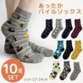 靴下 レディース 暖か 可愛い 10足セット 北欧デザイン 内側パイル 冬 ソックス おしゃれ かわいい あったか ふんわり クルー丈 22.0cm-24.0cm