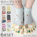 5本指ソックス 6足セット 可愛いプリントデザイン くるぶし丈 / 靴下 レディース 五本指 ショート丈 ソックス 5本指靴下 23-25cm ネコ 猫 犬 イヌ クマ