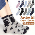 靴下 レディース 10足セット クルー丈 ソックス 可愛い アニマル 動物 デザイン ねこ パンダ ペンギン 犬 春 夏 プレゼント ギフト 22-24cmサイズ