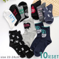 レディース ソックス 10足セット 綿混 靴下 クルー丈 おしゃれ 可愛い デザイン 黒 グレー 白 22-24cmサイズ