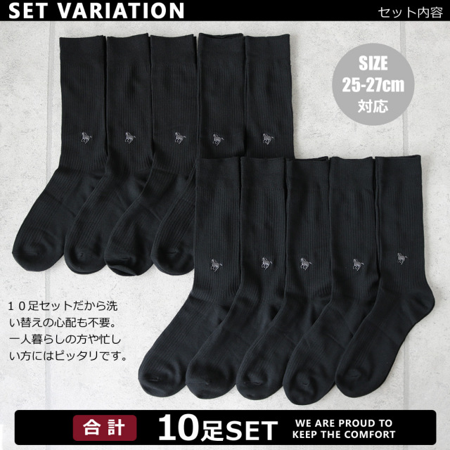 ●しっかりとした高級感のあるギフトボックスに入っているので、自分用にはもちろん、お祝い事や父の日、誕生日などのプレゼント用にもピッタリのセットです。 ●ベーシックで使いやすいリブソックスなので、仕事用や休日用にも幅広い年齢層の方にお喜びいただけます。 ●毎日履いても安心の10足セット。洗い替えの心配もないので、ひとり暮らしや梅雨の時期などにもとっても便利です。 ●丈の長さは、 履き口が部分がふくろはぎ下あたりにくるスタンダードなクルー丈ソックスです。 |