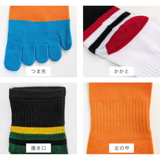 | タイプ | かかと付き5本指ミドル丈(ハーフ丈)ソックス |